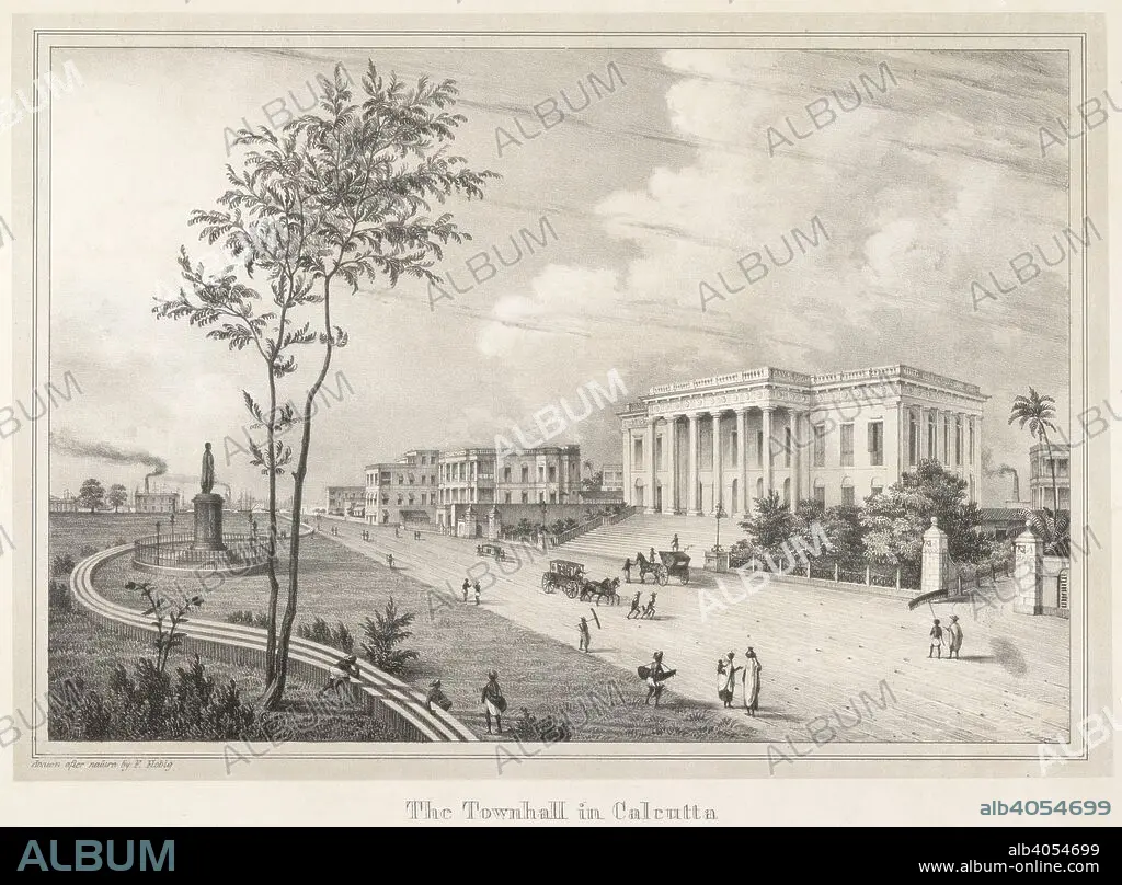 FREDERICK FIEBIG. 'The Town Hall in Calcutta'. Opposite the Town Hall is Richard Westmacott's statue of Sir William Cavendish-Bentinck, the Governor-General of India from 1833-1835. c.1847. Uncoloured lithograph. Source: P79. Language: English.