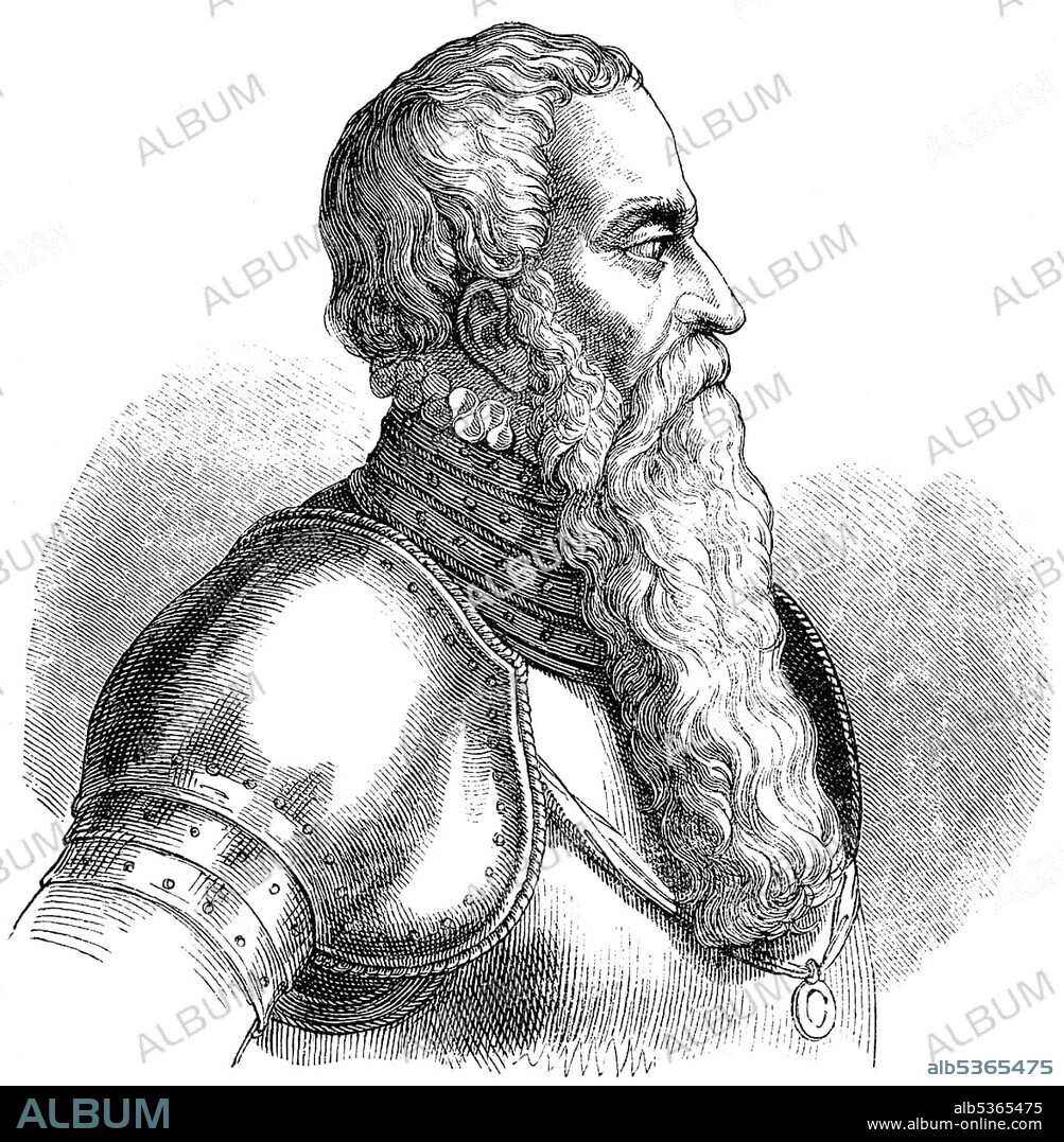 Caption: Historical drawing from the 19th Century, portrait of Gustav I of Sweden, Gustav Vasa or Gustav Eriksson Vasa or Gustav I, 1496-1560, Swedish king from 1523-1560