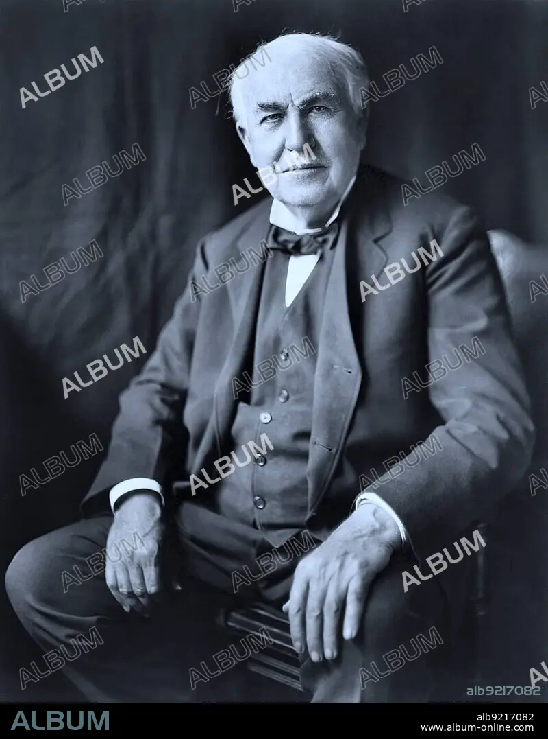 Caption: Thomas Alva Edison, 11 February 1847, 18 October 1931, a US inventor, electrical engineer and entrepreneur specialising in the field of electricity and electrical engineering, image from 1922, Historic, digitally restored reproduction of an original artwork from the period, exact original date unknown