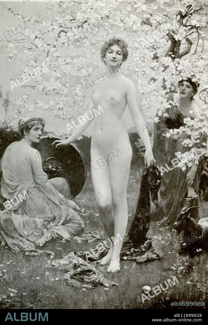 Caption: This image shows the Judgement of Paris by the artist Solomon J Solomon. In Greek legend, Paris was a Trojan prince, the son of Priam and Hecuba. When Eris, the Greek goddess of discord, was not invited to the marriage of the Greek leader Achilles, she threw a golden apple into the festivities, with the words 'for the fairest' written on it. The goddesses Hera, Aphrodite, and Athena each claimed the apple, and Zeus, the king of the gods, had Paris choose which one should get it. Hermes, the messenger god, acts as a guide, arranging the meeting between the goddesses and Paris. Aphrodite promised Paris Helen, queen of Sparta, if he picked her, and so he did. The result was the Trojan War as the Greeks fought to Helen to Menelaus, the ruler of Sparta. Solomon Joseph Solomon (died 1927) was a British painter, a founding member of the New English Art Club and member of the Royal Academy. Solomon's family was Jewish, and his sister, Lily Delissa Joseph, was also a painter.