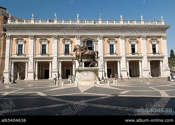Equestrian statue of Marcus Aurelius on the Capitoline Hill, the Palazzo Nuovo, Capitoline Museums, Rome, Italy, Europe