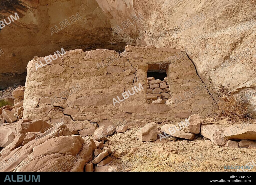 Historic remnants of a dwelling of the Anasazi Indians, about 900 years old, Cold Springs Cave near Bluff, Utah, USA