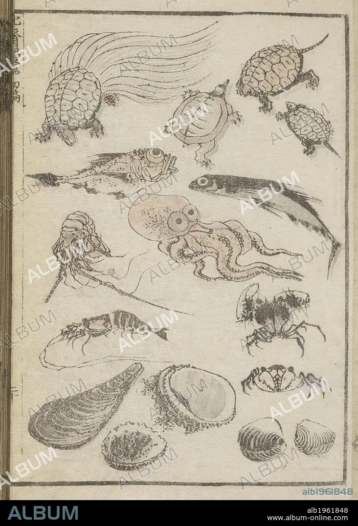 Caption: Marine life. Hokusai Manga. Edo (Tokyo) , Japan,(1760-1849). Marine life. Image taken from : Hokusai Manga Originally published/produced in Edo(Tokyo),Japan,1760-1849 . . Source: Or.65.a.43 volume 1,f 20. Language: Japanese.