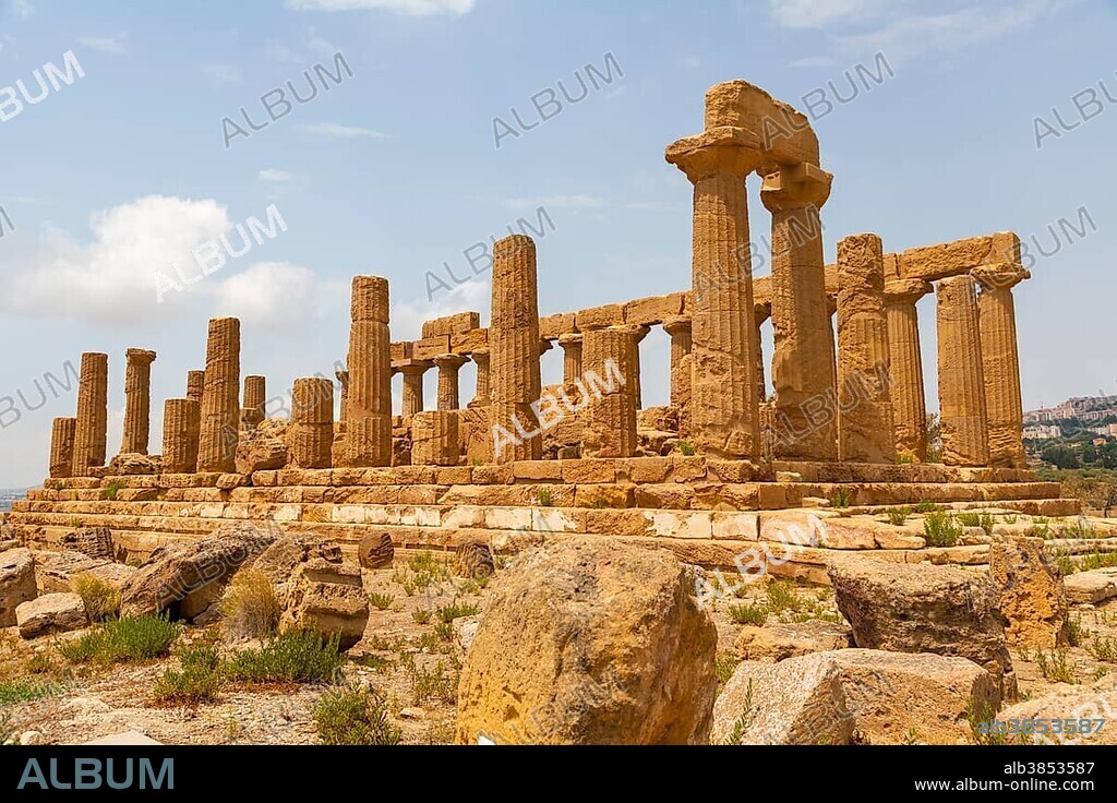 Caption: Tempio di Giunone, or Temple of Hera Lakinia, Temple of Juno, Temple D, Akragas, Valle dei Templi, Valley of the Temples, or Vaddi di li Tempri, Agrigento, Sicily, Italy, Europe
