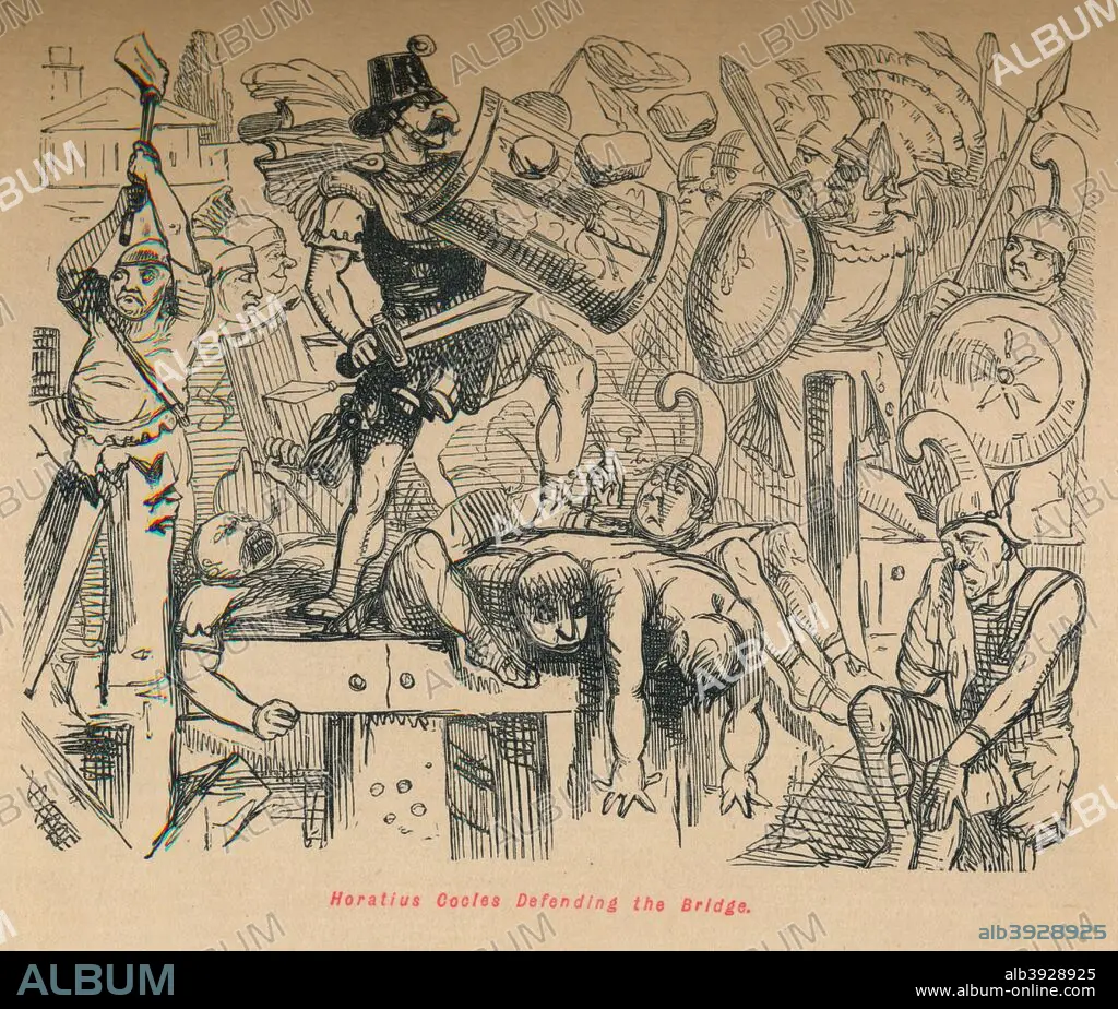 'Horatius Cocles Defending the Bridge', 1852. From The Comic History of Rome, by Gilbert A A'Beckett, illustrated by John Leech. [Bradbury, Agnew & Co, London, 1852].