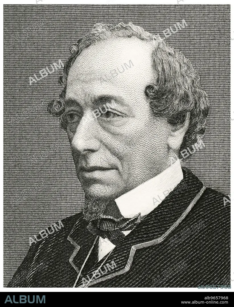 Caption: Benjamin Disraeli (1804-1881), British Politician and Prime Minister of the United Kingdom 1868-68, 1874-80, Head and Shoulders Portrait, Steel Engraving, Portrait Gallery of Eminent Men and Women of Europe and America by Evert A. Duyckinck, Published by Henry J. Johnson, Johnson, Wilson & Company, New York, 1873