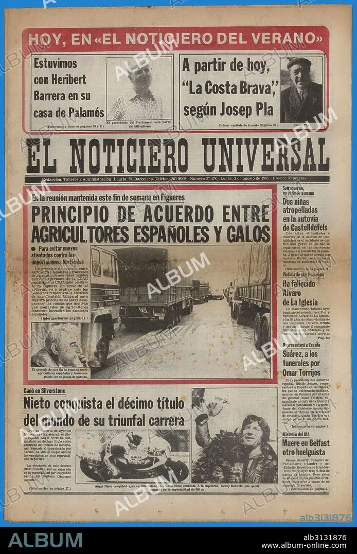 Cover of the newspaper El Noticiero Universal, published in Barcelona, August 1981