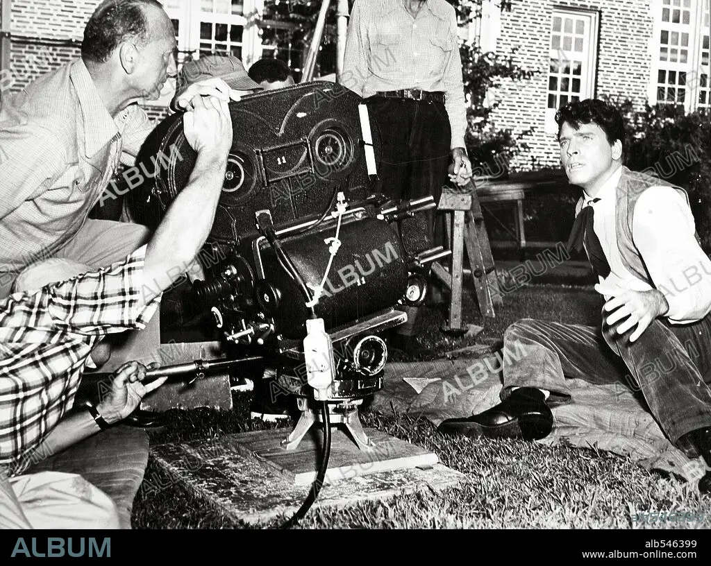 BURT LANCASTER and MICHAEL CURTIZ in JIM THORPE--ALL-AMERICAN, 1951, directed by MICHAEL CURTIZ. Copyright WARNER BROTHERS.