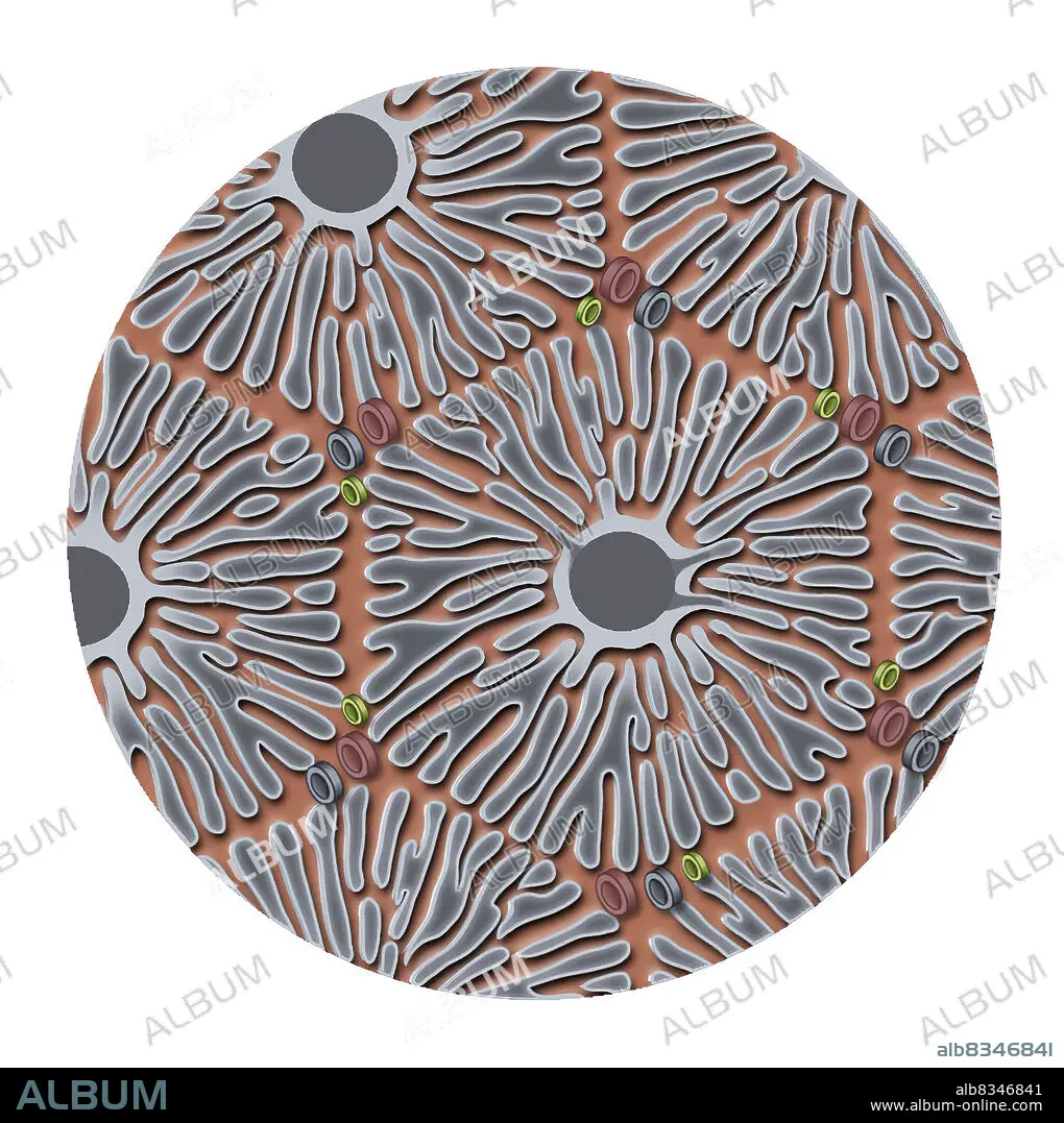 Caption: The hepatic lobule, also known as classical lobule, usually has an hexagonal shape.