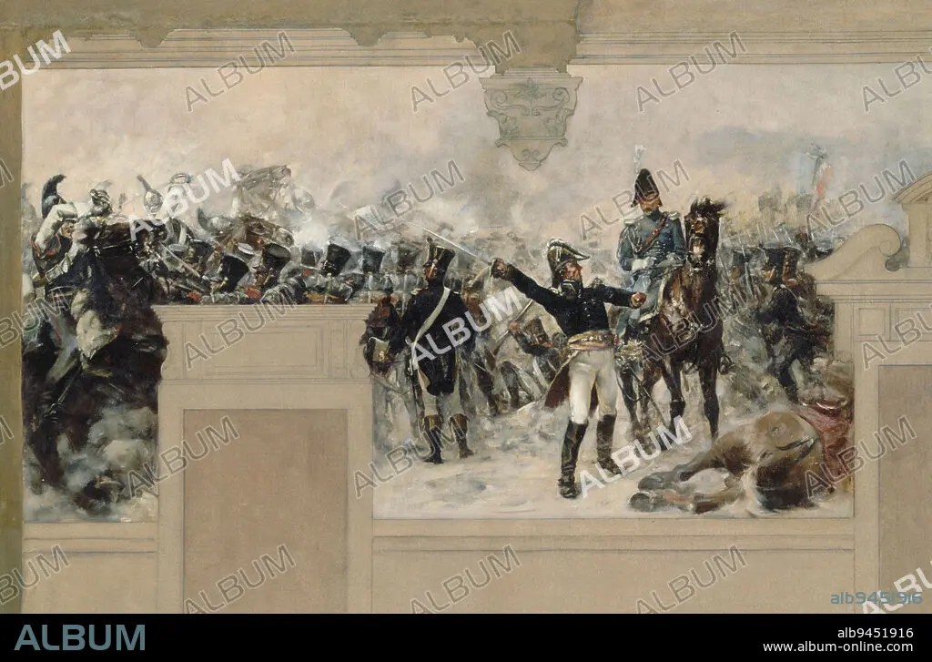 Caption: Sketch for the town hall of Pantin: Defense of Pantin in 1814 by General Compans, Schommer, François, Painter, In 1886, 4th quarter of the 19th century, Painting, Graphite pencil, Oil painting, Canvas, Height: 75.5 cm, Width: 161 cm