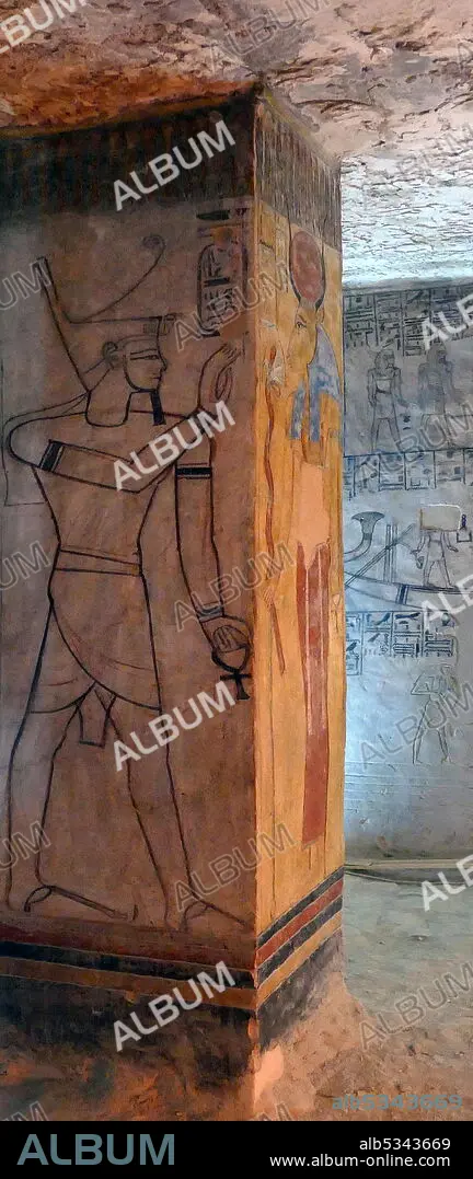 Caption: Tomb KV14 is a joint tomb, used originally by Twosret and then reused and extended by Setnakhte. Located in the main body of the Valley of the Kings, it has two burial chambers. Twosret (Tawosret, Tausret, d. 1189 BC) was the last known ruler and the final Pharaoh of the Nineteenth Dynasty of Egypt. she (Twosret), became first regent to Seti's heir Siptah jointly with Chancellor Bay,.