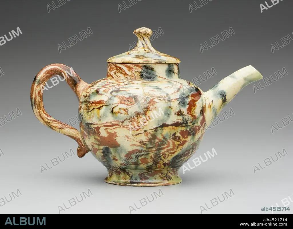 Caption: Unknown (English), Solid Agate Teapot, ca. 1750, Lead-glazed agate ware, Overall: 4 3/4 × 6 7/8 × 4 inches (12.1 × 17.5 × 10.2 cm)