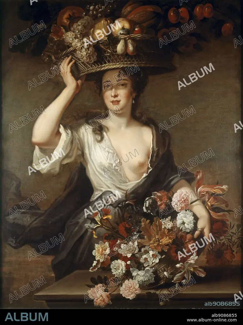 Caption: Woman as Flora. by Godfrey Kneller. Flowers by John Baptiste Monnoyer (1636-99). Painting in Brighton Royal Pavilion. Sir Godfrey Kneller, 1st Baronet (8 August 1646 - 19 October 1723), artist, court painter to several British monarchs. Kneller was born Gottfried Kniller in Lübeck, Germany. ©2006 TopFoto