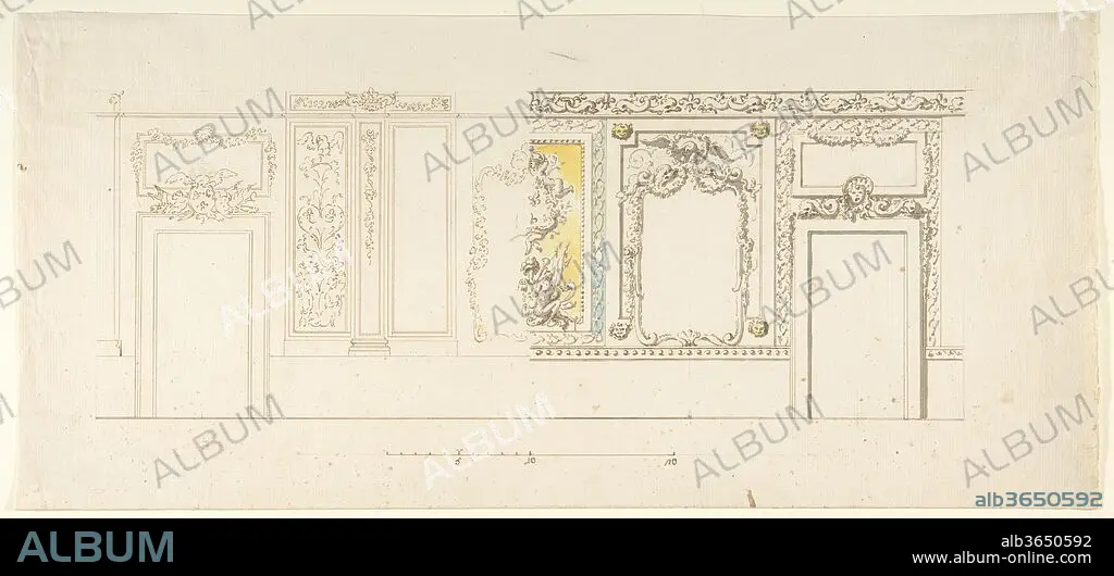 Title: Design for an Interior Wall Decoration of a Palazzo with Two Doorways and a Decorated Panelling with Trophies