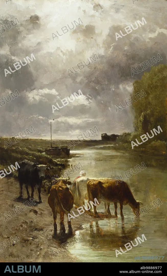 Title: Cattle Drinking, 1851. Creator: Constant Troyon.