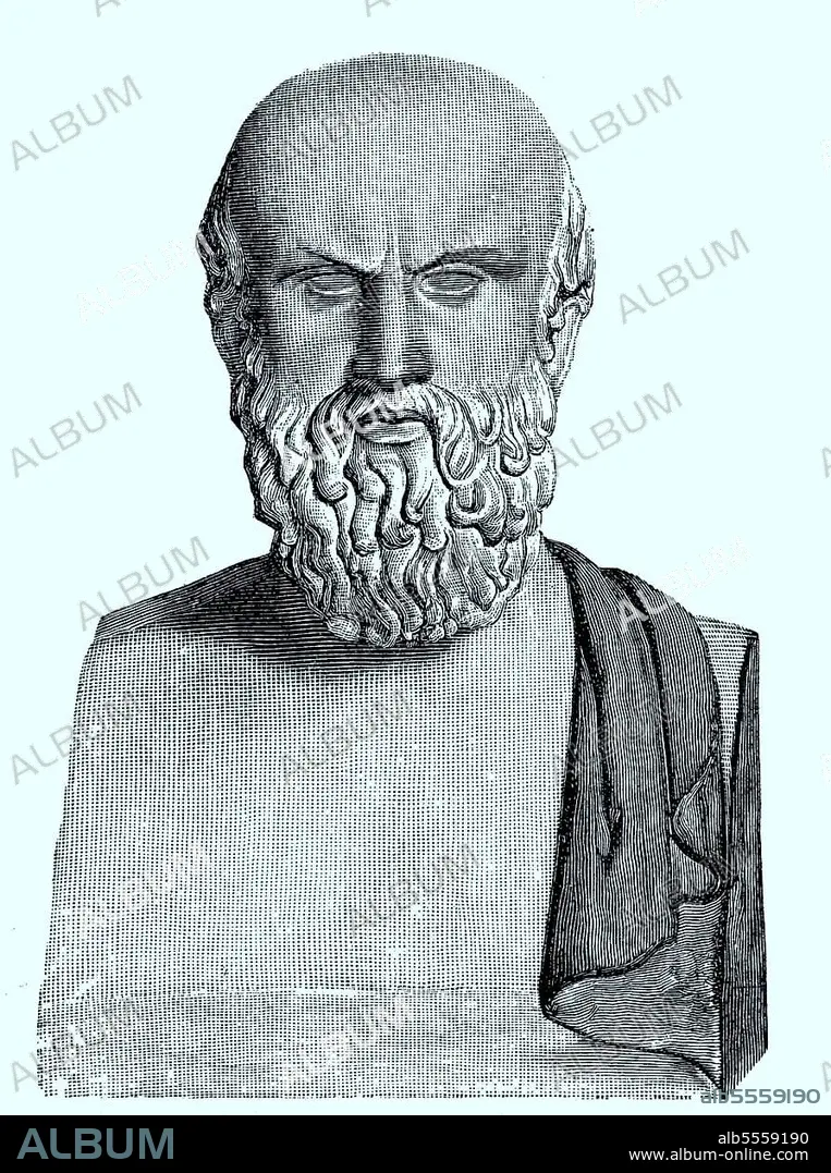Bust of Aeschylus, 525 B. C. 456 B. in front of Sophocles and Euripides the oldest of the three great poets of Greek tragedy, bust in the Vatican, Italy, digitally enhanced reproduction of an original print from the 19th century