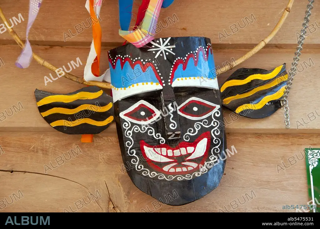 Thailand: Mask for Chiangkhan's own 'Phi Ta Nam' Festival on Chai Kong Road, Chiang Khan, Loei Province