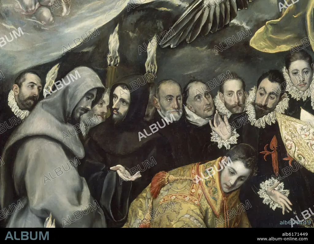 EL GRECO. EL ENTIERRO DEL CONDE ORGAZ - DETALLE DE LOS FRAILES CONVERSANDO JUNTO A SAN ESTEBAN - 1586/1588 - O/L - MANIERISMO ESPAÑOL - Conj nº 282