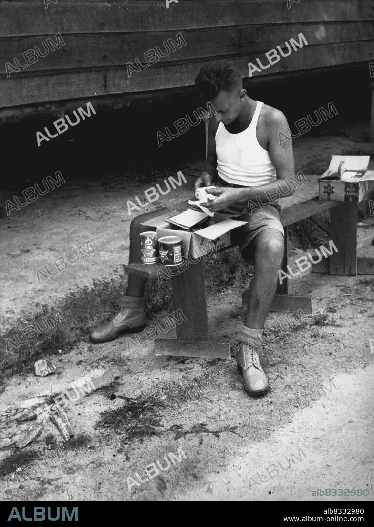 Caption: Prisoners of war released from Changi Prison Camp were evacuated from Singapore by the Australian Hospital Ship Manunda, the first Australian ship to arrive at Singapore after the surrender of the Japanene. Shown, a group of 8 Division. September 15, 1945. (Photo by Australian War Memorial Canberra).