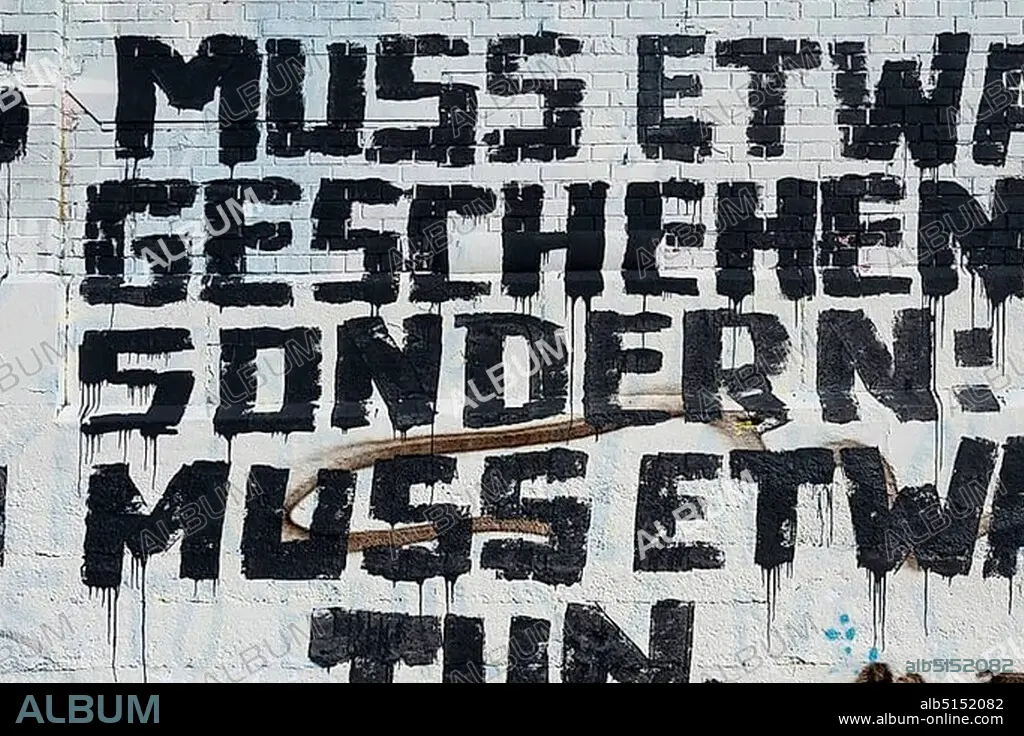 Graffiti with slogan on wall, commemoration of the "White Rose" and Hans Scholl, slaughterhouse area, Munich, Upper Bavaria, Bavaria, Germany