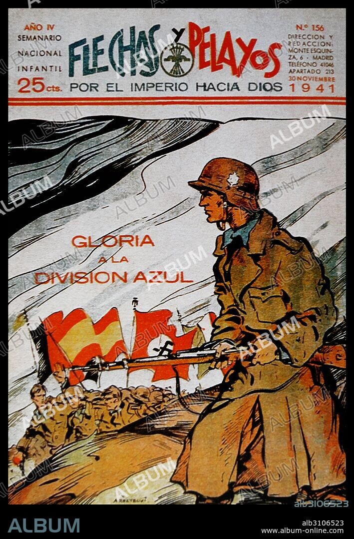 Propaganda poster for the Blue Division (División Azul, Blaue Division), a unit of Spanish volunteers that served in the German Army on the Eastern Front of the Second World War.