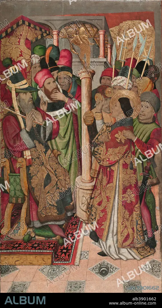 JAUME HUGUET. Saint Vincent before Dacian. Date/Period: Ca. 1455-1460. Painting. Tempera, stucco reliefs and gold leaf on wood. Height: 1,760 mm (69.29 in); Width: 978 mm (38.50 in).