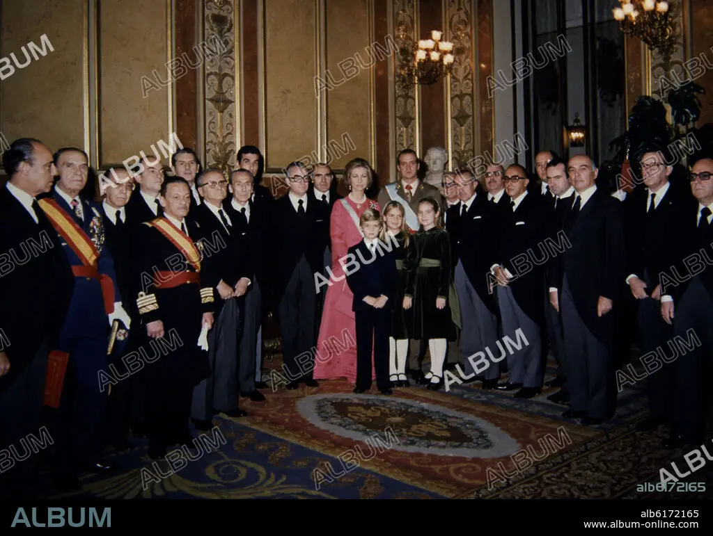 CONSEJO DEL REINO: 16 CONSEJEROS JUNTO A LA FAMILIA REAL EL DIA DE SU PROCLAMACION COMO REY EL 22 DE NOVIEMBRE DE 1975