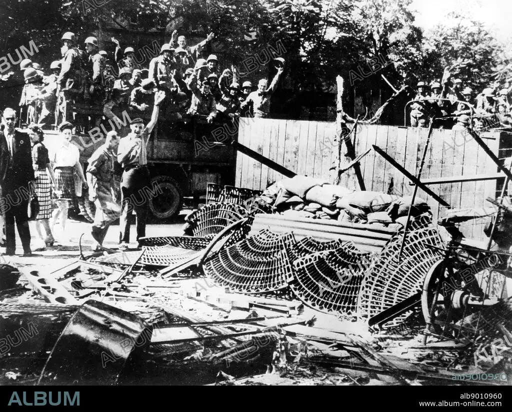 Barricades erected near the Place de la Concorde, Paris, August 1944. As Allied forces neared Paris, the city's citizens mobilised to help bring the Nazi occupation to a close. A general strike was called on 18 August, barricades were erected and skirmishes with German troops broke out. By the time the Germans surrendered after Free French troops entered the city on 25 August, 1500 civilians and members of the Resistance had been killed in the fighting. The photographer is unknown.