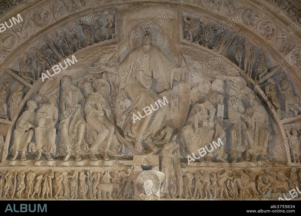 Close-up of Narthex tympanum, Vezelay Basilica, Vezelay, UNESCO World Heritage Site, Yonne, Burgundy, France, Europe