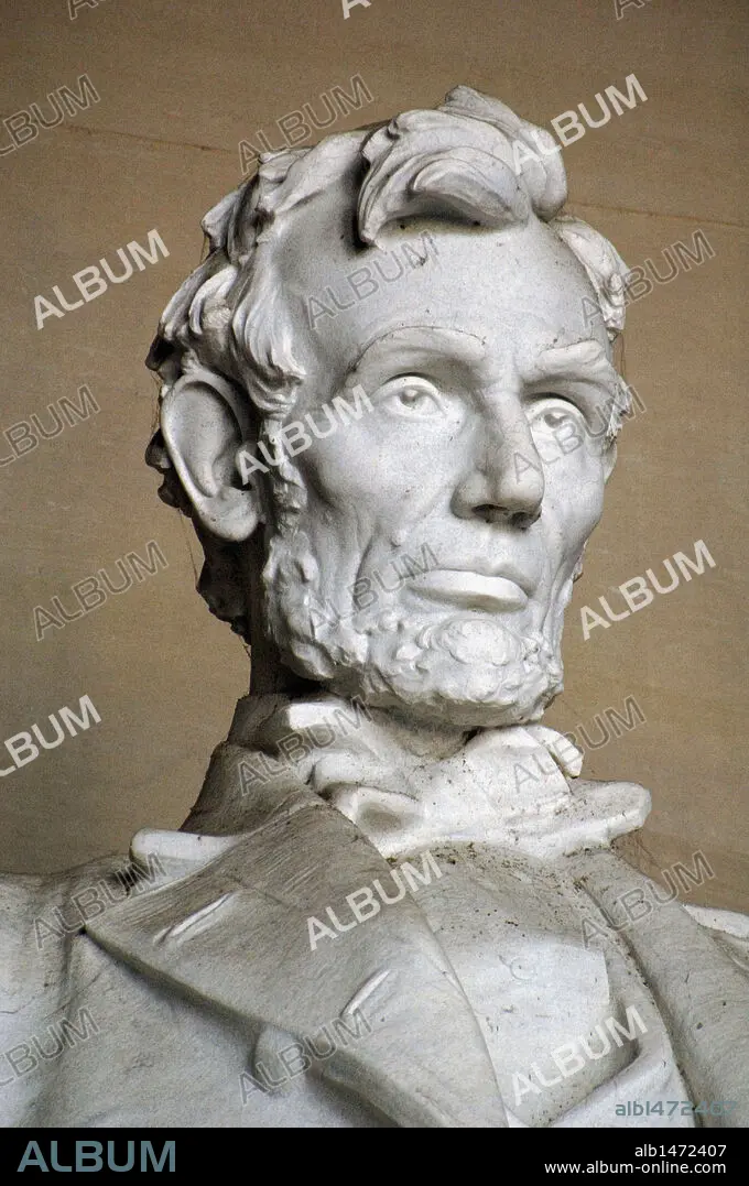 ABRAHAM LINCOLN (1809-1865). Político estadounidense. Elegido presidente en 1860. Estatua monumental (detalle) del presidente en el LINCOLN MEMORIAL. Washington DC. Distrito de Columbia. Estados Unidos.