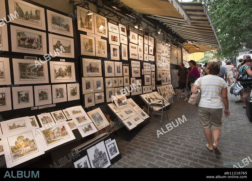 Artists displays along Rue du Tresor, Quebec City, Quebec, Canada, North America