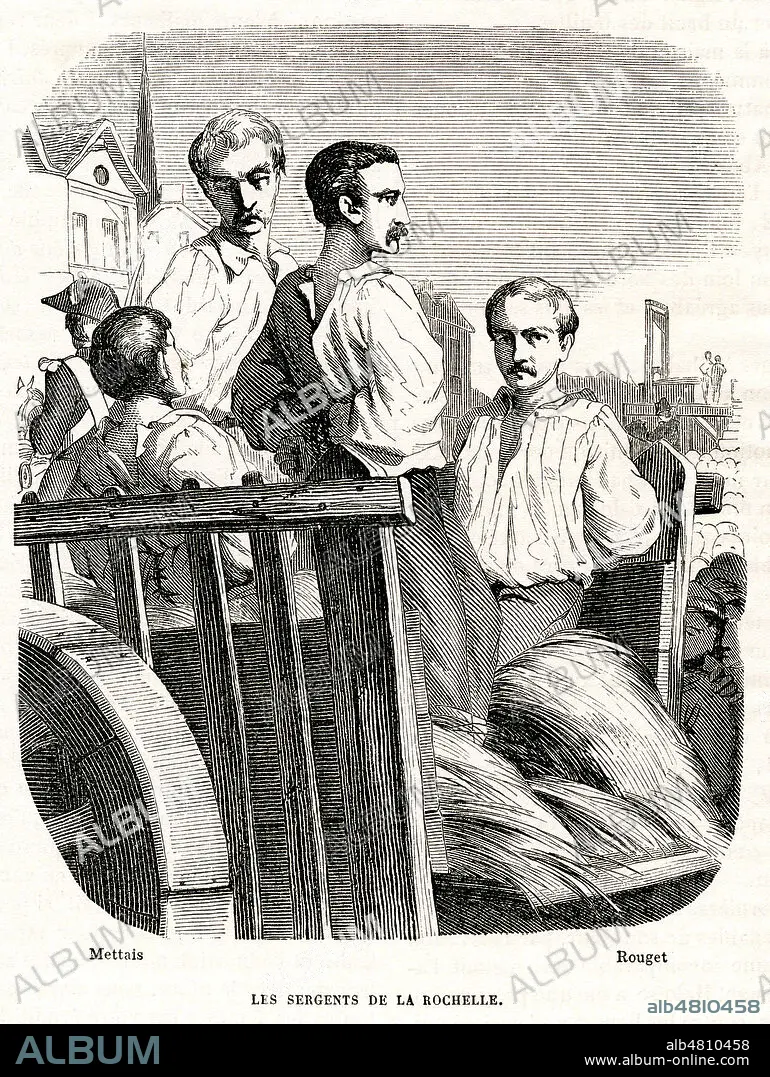 Execution des sergents de la Rochelle le 21 septembre 1822. apres leur conspiration contre LOUIS XVIII (1755-1824). Illustration de 1851 par Charles Joseph METTAIS (19 s.) pour Histoire des Martyrs de la Liberte par Alphonse ESQUIROS (1812-1876). Credit : Collection Jonas/Kharbine-Tapabor.
