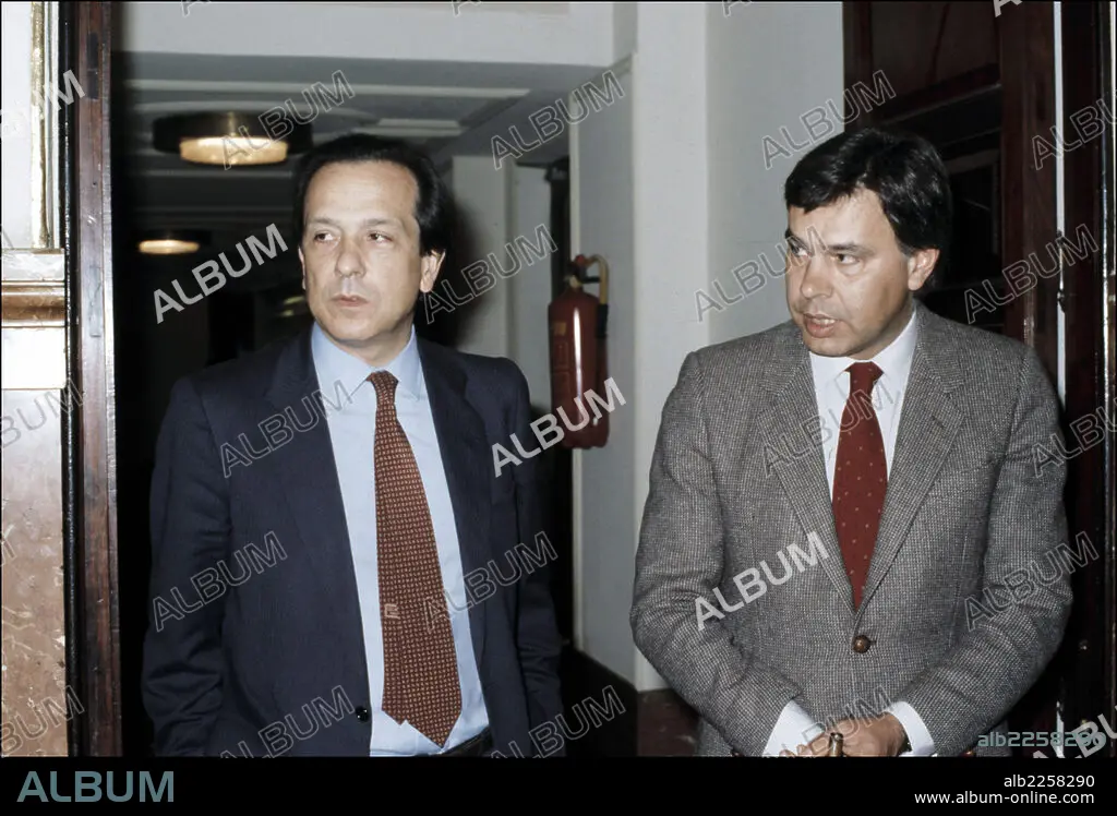 Descripción: LEDESMA, FERNANDO. POLITICO ESPAÑOL. FOTO JUNTO A FELIPE GONZALEZ EN LOS PASILLOS DEL CONGRESO DE LOS DIPUTADOS
