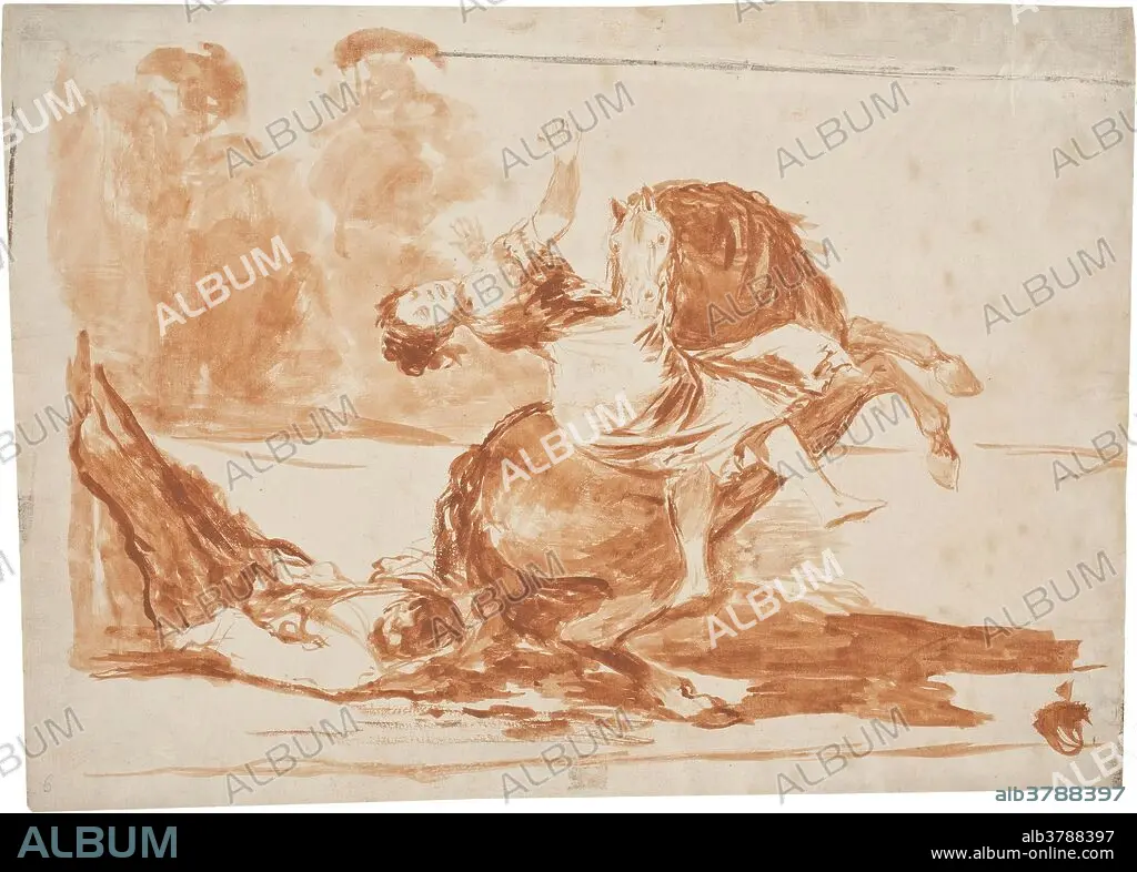 Francisco de Goya y Lucientes / 'El caballo raptor'. 1815 - 1819. Aguada, Sanguina sobre papel verjurado, ahuesado, 248 x 347 mm.