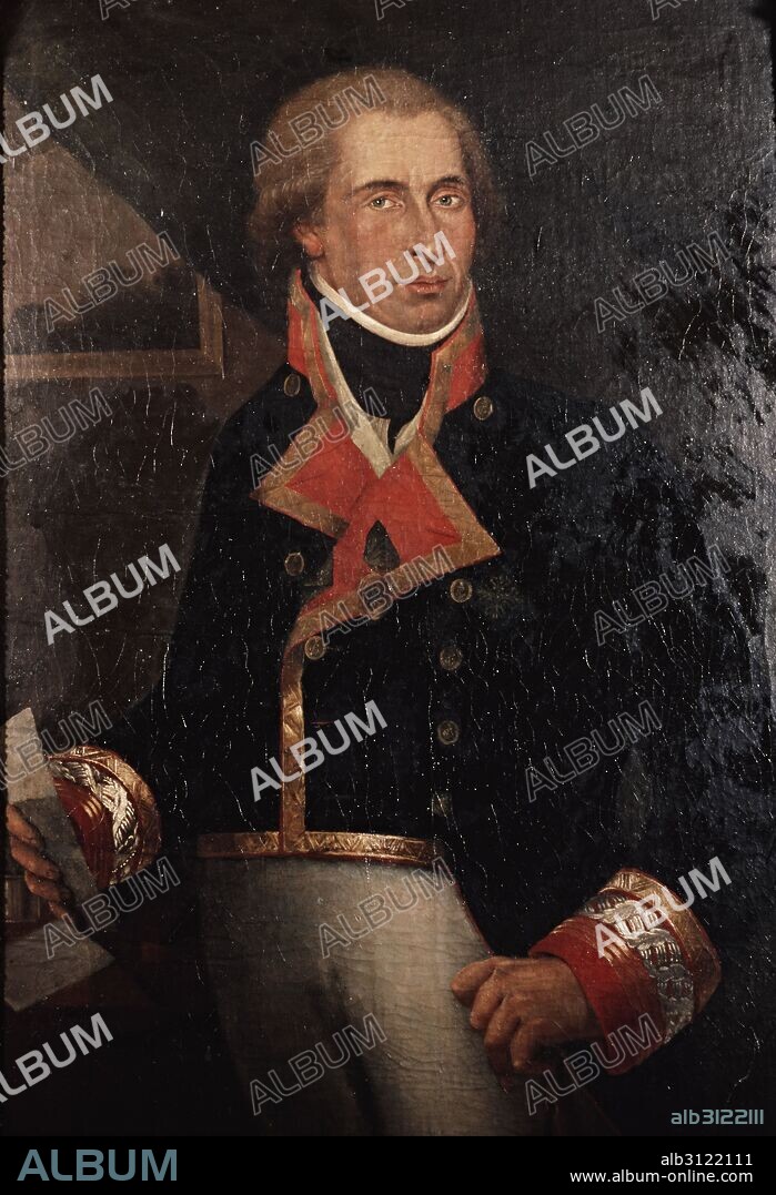Retrato de Dionisio Alcalá Galiano (1760-1805). Marino español. Cartógrafo de la expedición que elaboró cartas marinas del estrecho de Magallanes y del Mediterráneo oriental. Brigadier de la armada, murió en la batalla de Trafalgar. Anónimo.
