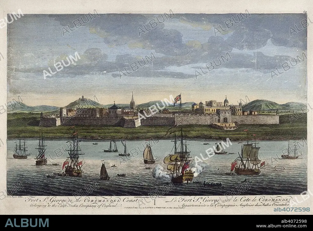 JAN VAN RYNE. Fort of St.George. Fort of St.George on the Coromandel Coast, Madras, belonging to the East India Company of England. Line engraving. . Source: P236,.