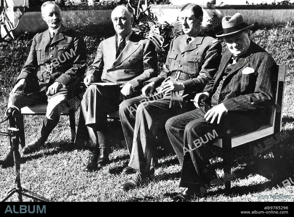 Casablanca (Marruecos). 14/01/1943. Conferencia en Casablanca, celebrada entre el 14 y el 24 de enero de 1943. De izquierda a derecha: Giraud, Roosevelt, De Gaulle y Churchill
