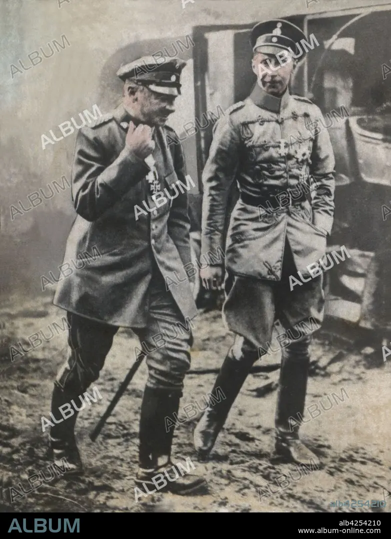 Primera guerra mundial (1914-1918). El kaiser Guillermo II de Alemania (1888-1918) y el rey Federico Augusto III de Sajonia (1865-1932) en campaña.