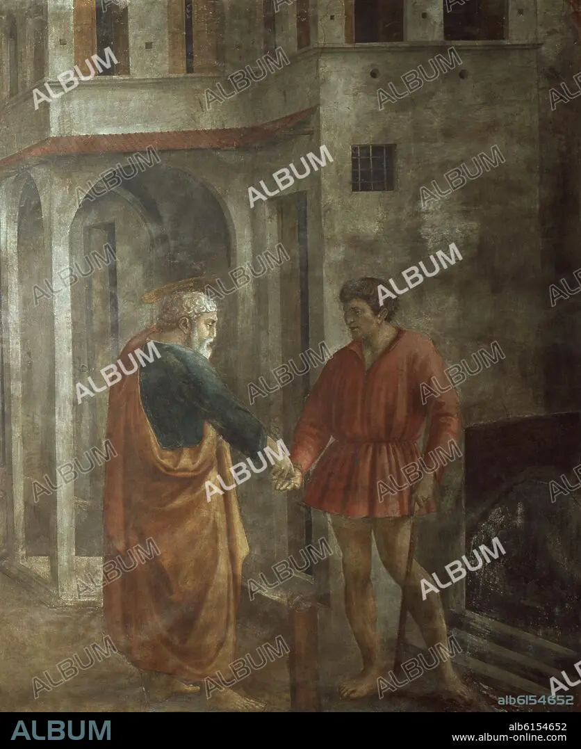 TOMMASO DI SER GIOVANNI DI MONE (1401-28) MASACCIO. CAPILLA BRANCACCI - EL PAGO DEL TRIBUTO O EL TRIBUTO DE LA MONEDA (DETALLE) - 1428 - ANTES DE RESTAURAR - RENACIMIENTO ITALIANO