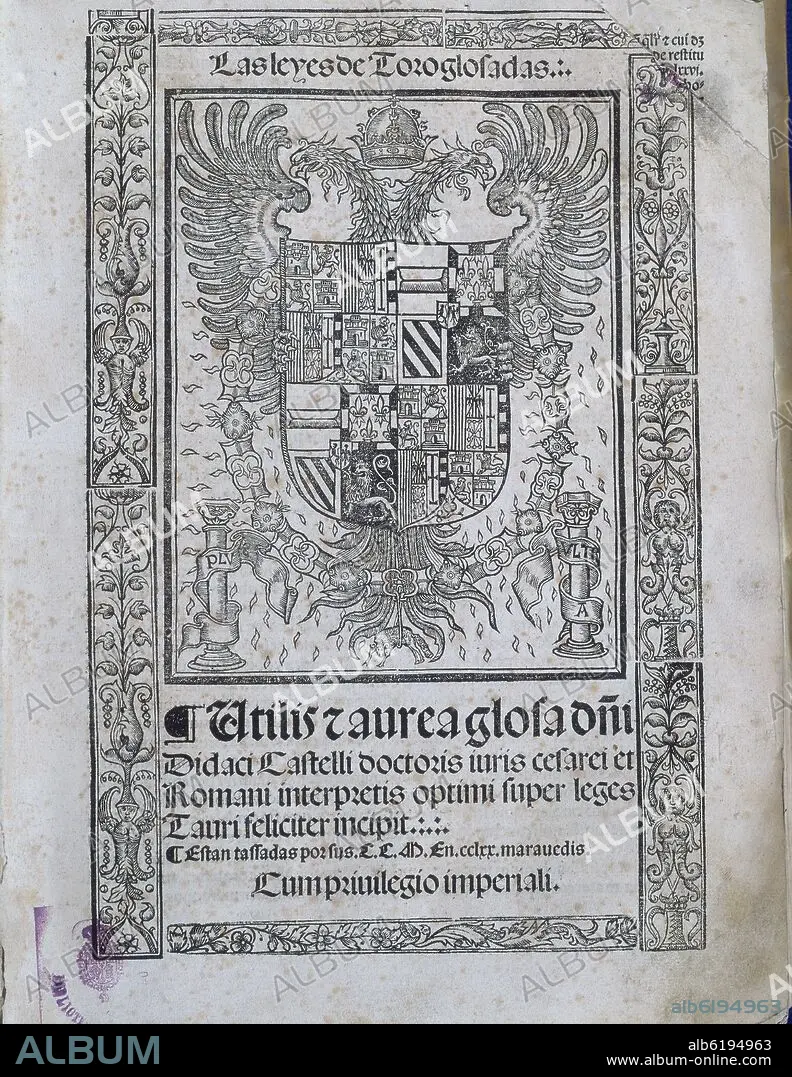 DIEGO DEL CASTILLO DE VILLASANTE (F S XV-1552). LEYES DE TORO GLOSADAS - BURGOS - 1527