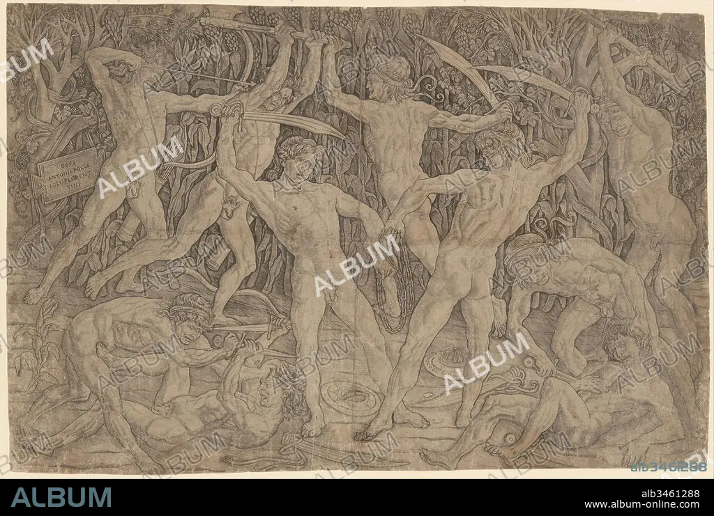 Battle of the naked men, ca. 1470–90, Engraving, sheet: 15 1/8 x 23 3/16 in. (38.4 x 58.9 cm), Prints, Antonio Pollaiuolo (Italian, Florence ca. 1432–1498 Rome), One of the earliest and most influential Italian engravings, this print is an anomaly in many respects. It is the largest engraving of its time, and the only one signed by the Florentine artist Antonio Pollaiuolo (1431/32–1498)