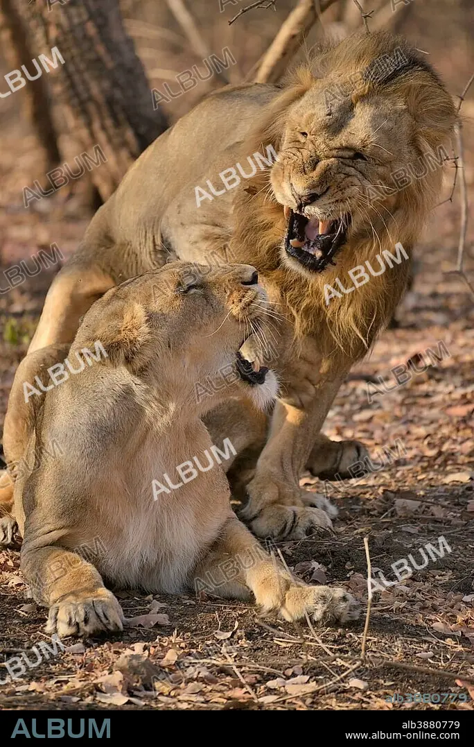 Asiatic Lions (Panthera leo persica), mating, Gir Forest National Park, Gir Sanctuary, Gujarat, India, Asia.
