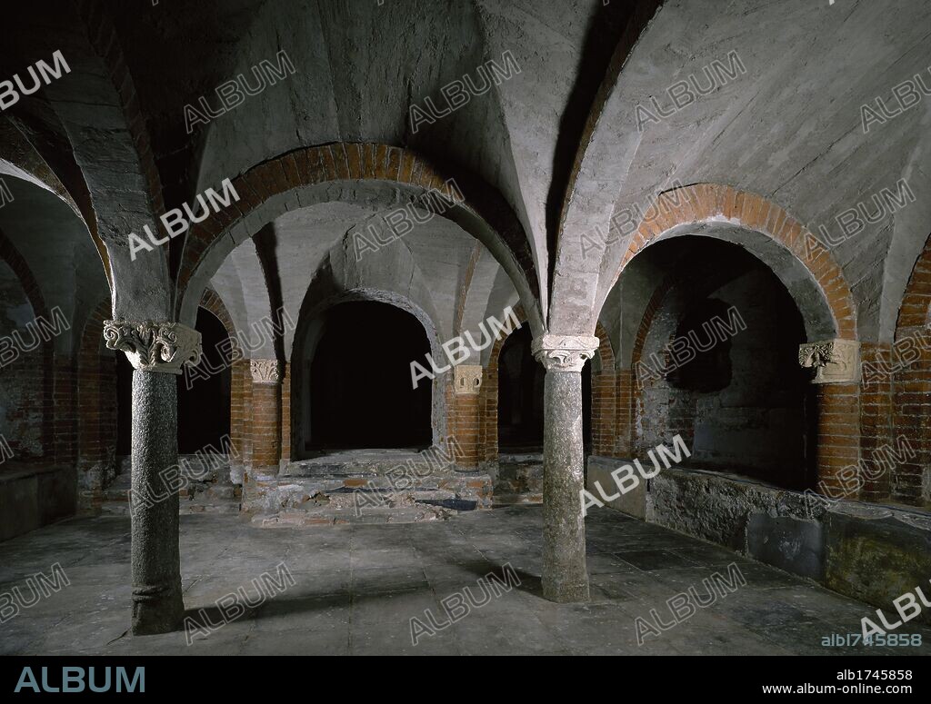 ARTE ROMANICO. ITALIA. DUOMO DE IVREA. Catedral románica construida durante el siglo X. Vista central de la CRIPTA. IVREA. Provincia de Turín. Piamonte.