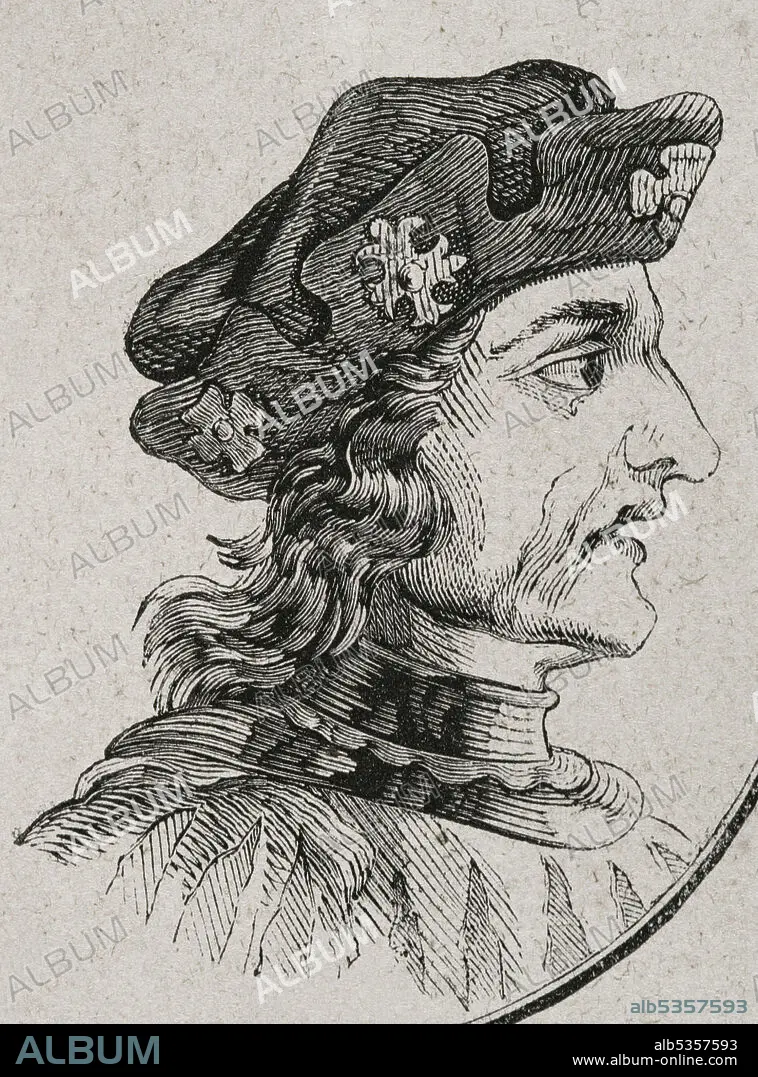 Descripción: Fruela II, el Leproso (h. 874-925). Rey de Asturias (910-924) y rey de León (924-925). Retrato. Grabado. Las Glorias Nacionales. Tomo II, edición Madrid-Barcelona, 1853.