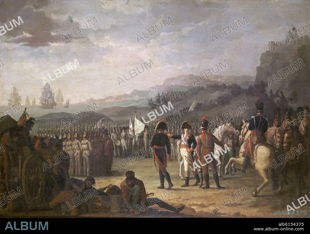 JUAN RODRIGUEZ JIMENEZ (1765-1830) EL PANADERO. 'Embarque del Marqués de La Romana y sus tropas', 1809, Óleo sobre lienzo, 119 x 167,5 cm.