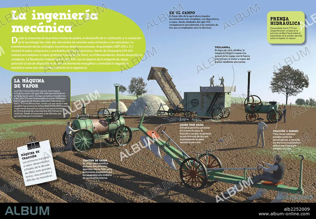 Infografía que muestra cómo gracias a la máquina de vapor y a la Revolución Industrial en general, se consolidó la ingeniería mecánica.