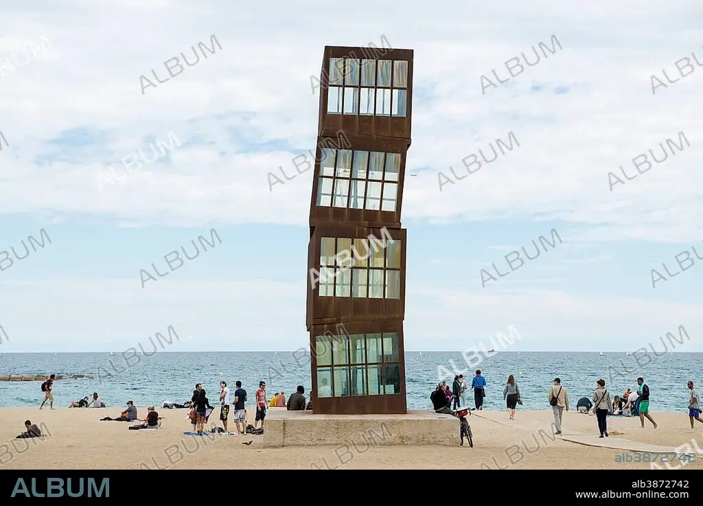 L'Estel Ferit, sculpture by Rebecca Horn at the beach of Barceloneta, Barcelona, Catalonia, Spain, Europe