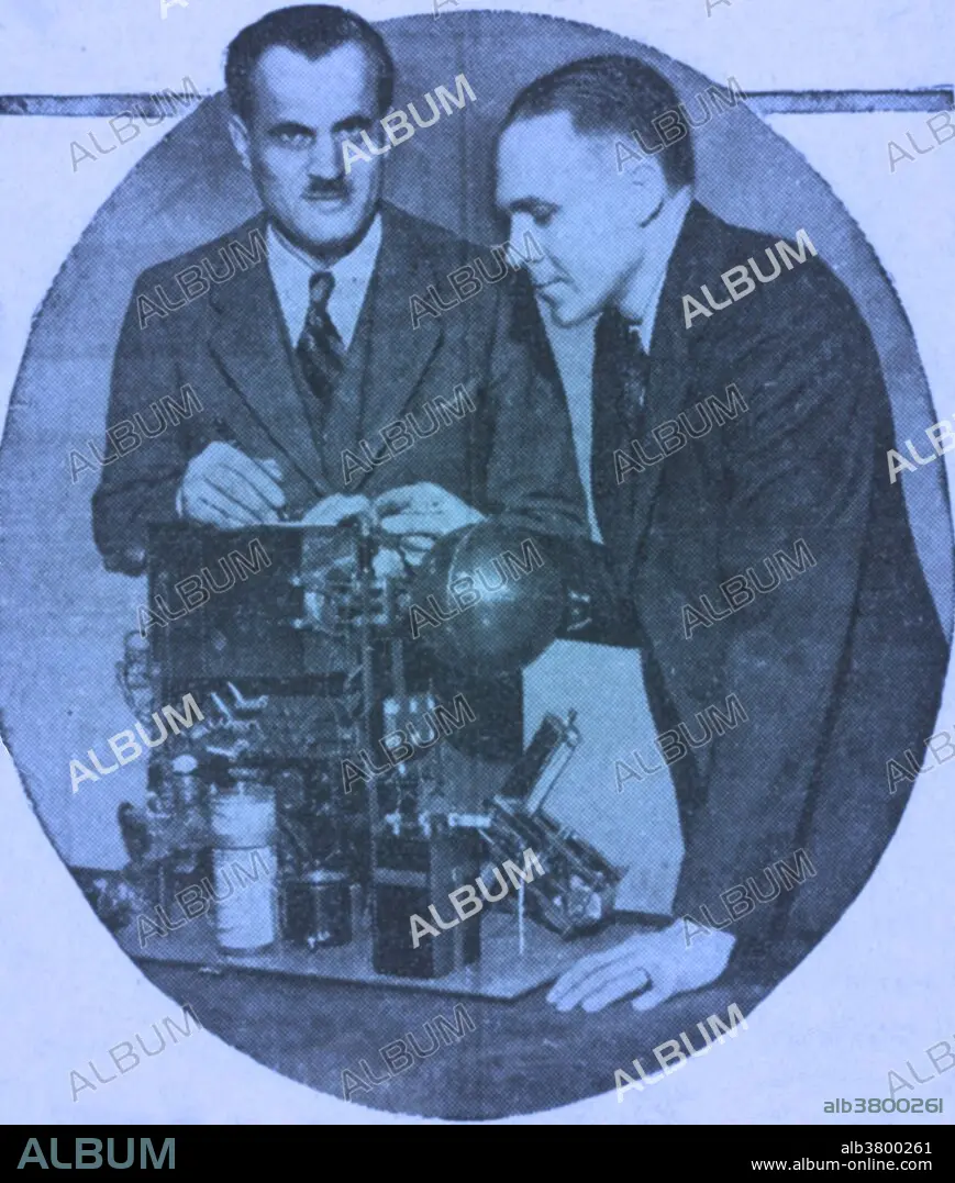 Compton (left) and his assistant, Richard Doan, look over equipment that Compton built for recording the intensity of cosmic rays in the stratosphere. The equipment will be carried into the stratosphere on a balloon and the measurements will be transmitted to the ground by radio. Arthur Holly Compton (September 10, 1892 - March 15, 1962) was an American physicist. In 1919, Compton was awarded a National Research Council Fellowship that allowed students to study abroad. He chose the Cavendish Laboratory in England, where he studied the scattering and absorption of gamma rays which led to the discovery of the Compton effect. He used X-rays to investigate ferromagnetism, concluding that it was a result of the alignment of electron spins, and studied cosmic rays, discovering that they were made up principally of positively charged particles. He won the Nobel Prize in Physics in 1927 for his discovery. During WWII, he was a key figure in the Manhattan Project that developed the first nuclear weapons. After the war, Compton became Chancellor of Washington University in St. Louis. During his tenure, the university formally desegregated its undergraduate divisions, named its first female full professor, and enrolled a record number of students after wartime veterans returned to the United States. He died in 1962 from a cerebral hemorrhage at the age of 69.