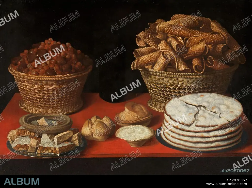 TOMÁS YEPES. Tomás Hiepes / 'Dulces y frutos secos sobre una mesa', First quarter 17th century, Spanish School.