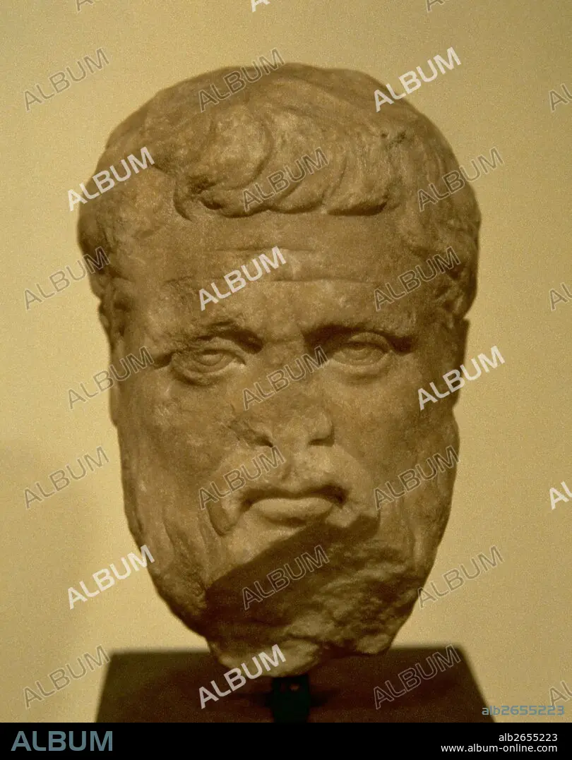 Descripción: PLATON (Atenas, 428-348 ó 347 a. C.). Filósofo griego. Hacia el año 387 fundó la Academia. Su doctrina se conoce a través de los textos del más ilustre de sus discípulos, Aristóteles. Autor de "La República" y "El Banquete" y creador de la filosofía clásica. BUSTO DE PLATON fechado entre los siglos II a. C. -III d. C., de procedencia desconocida. Museo Arqueológico Nacional. Atenas. Grecia